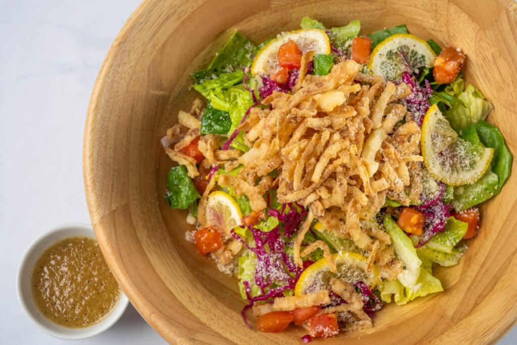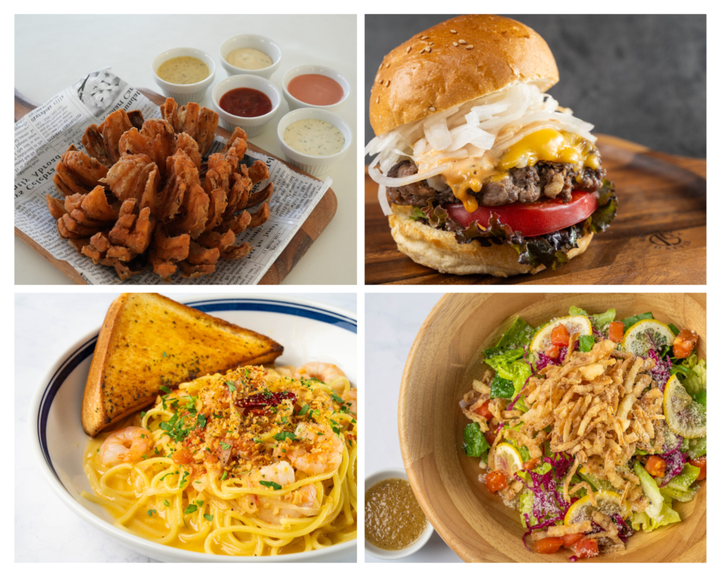 フレッシュオニオン、オニオンフライ、オニオンドレッシングと淡路島の玉ねぎを存分にお楽しみいただけます。また、定番人気の「シーザーサラダ」、いろいろな具材を楽しめるアメリカ定番の「コブサラダ」もご用意しております。