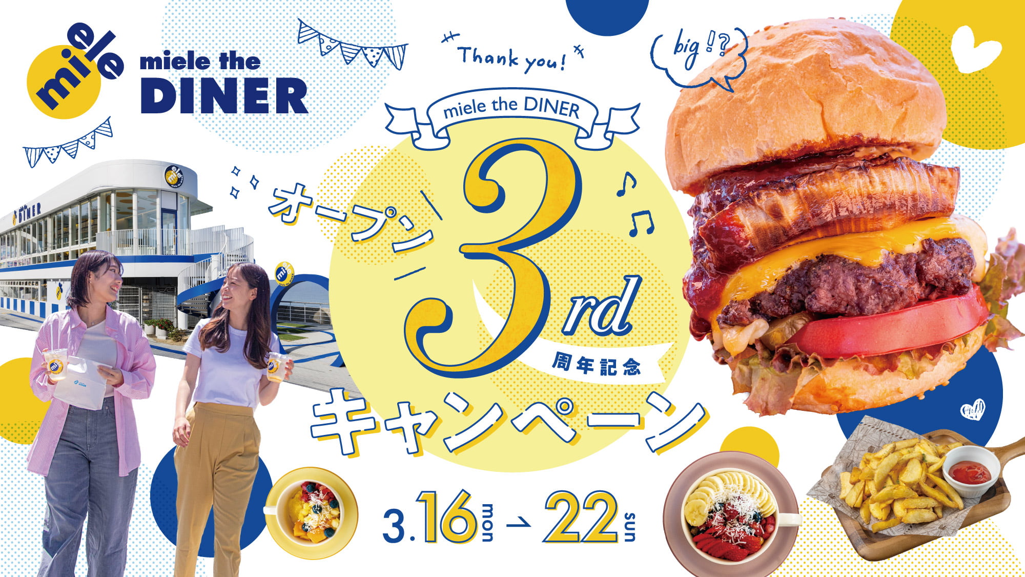 アメリカンダイナー&カフェ「miele the DINER」は、2026年3月でオープン3周年を迎えます。